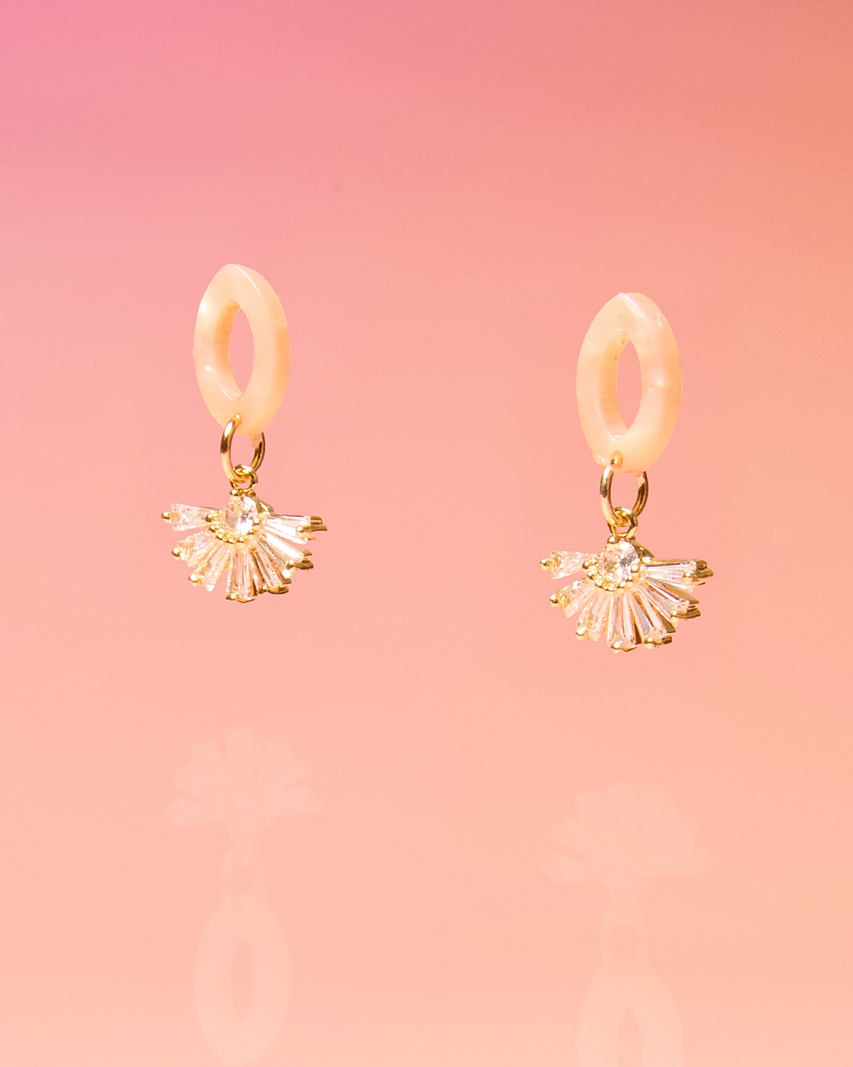 Materials: Resin, 14k gold plated glass charms, hypoallergenic posts