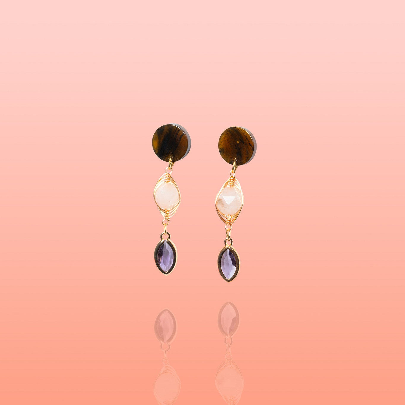 • Gemstone & Artisan Detail: Each pair is hand-connected with a genuine, hand-wrapped Jade stone and finished with a premium faceted glass charm.