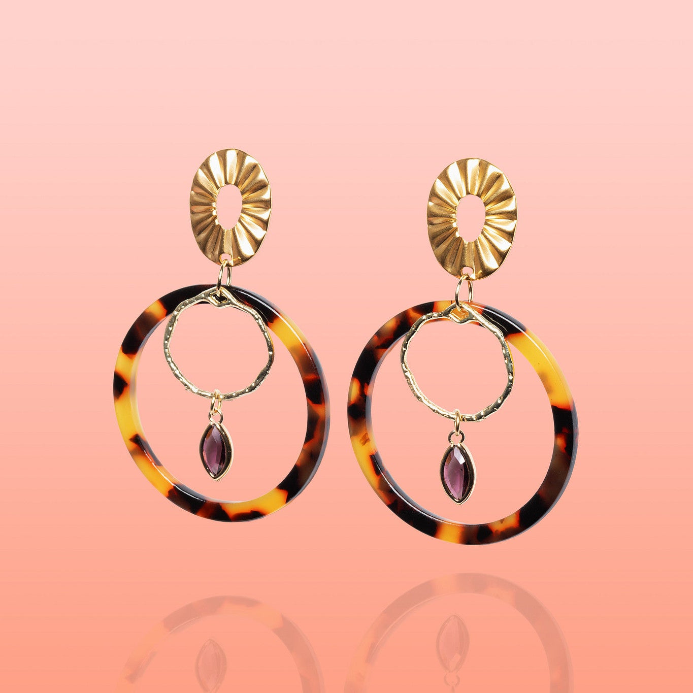 The Zahara Hoops feature a sophisticated vertical story, pairing a high-shine fluted gold post with a classic tortoiseshell resin hoop and a unique internal stainless steel ring. Designed for the woman who demands both high-impact style and technical durability, these hoops offer a bold silhouette that remains effortlessly lightweight.