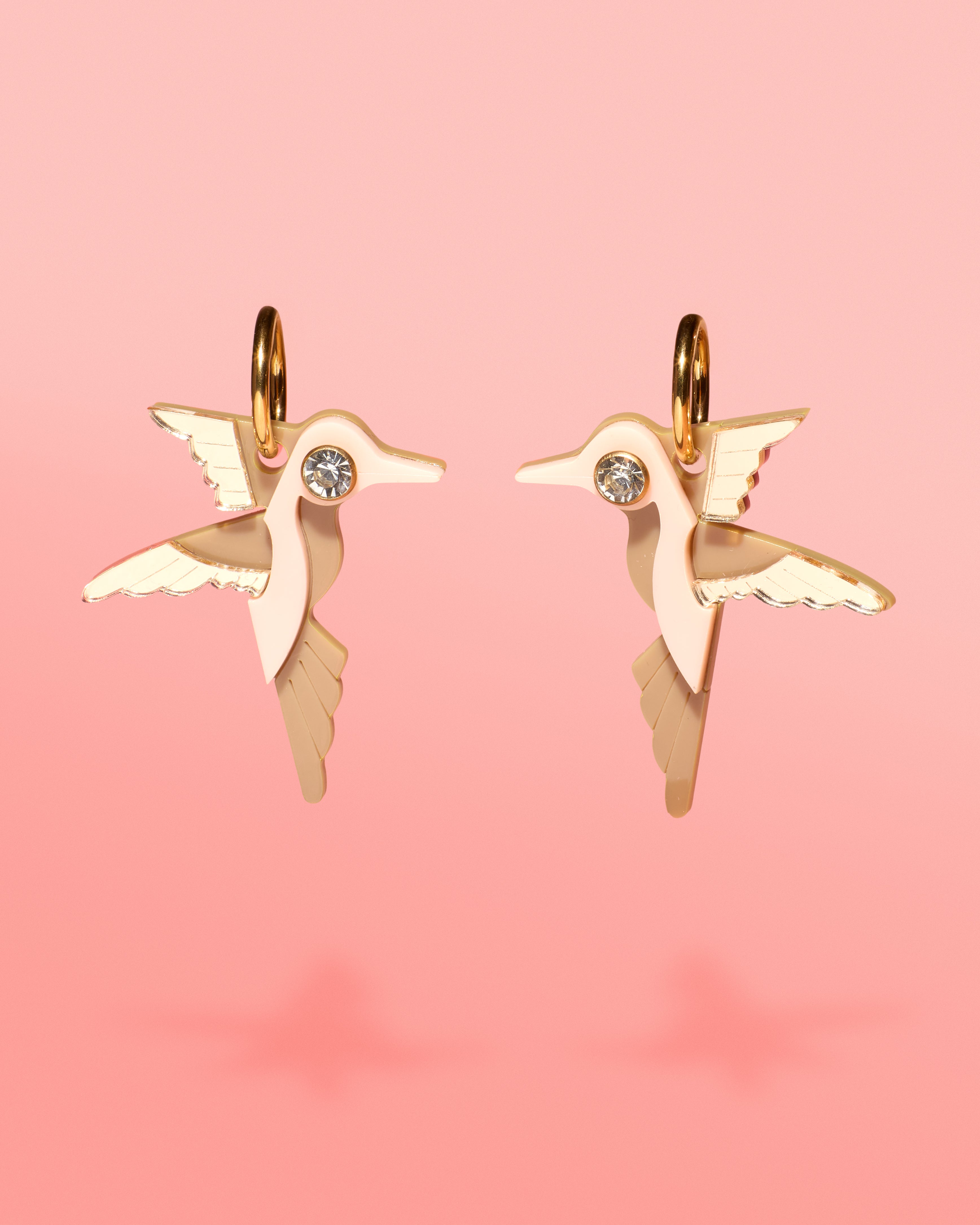 Features: Vacation earrings, statement earrings, removable hummingbird charm