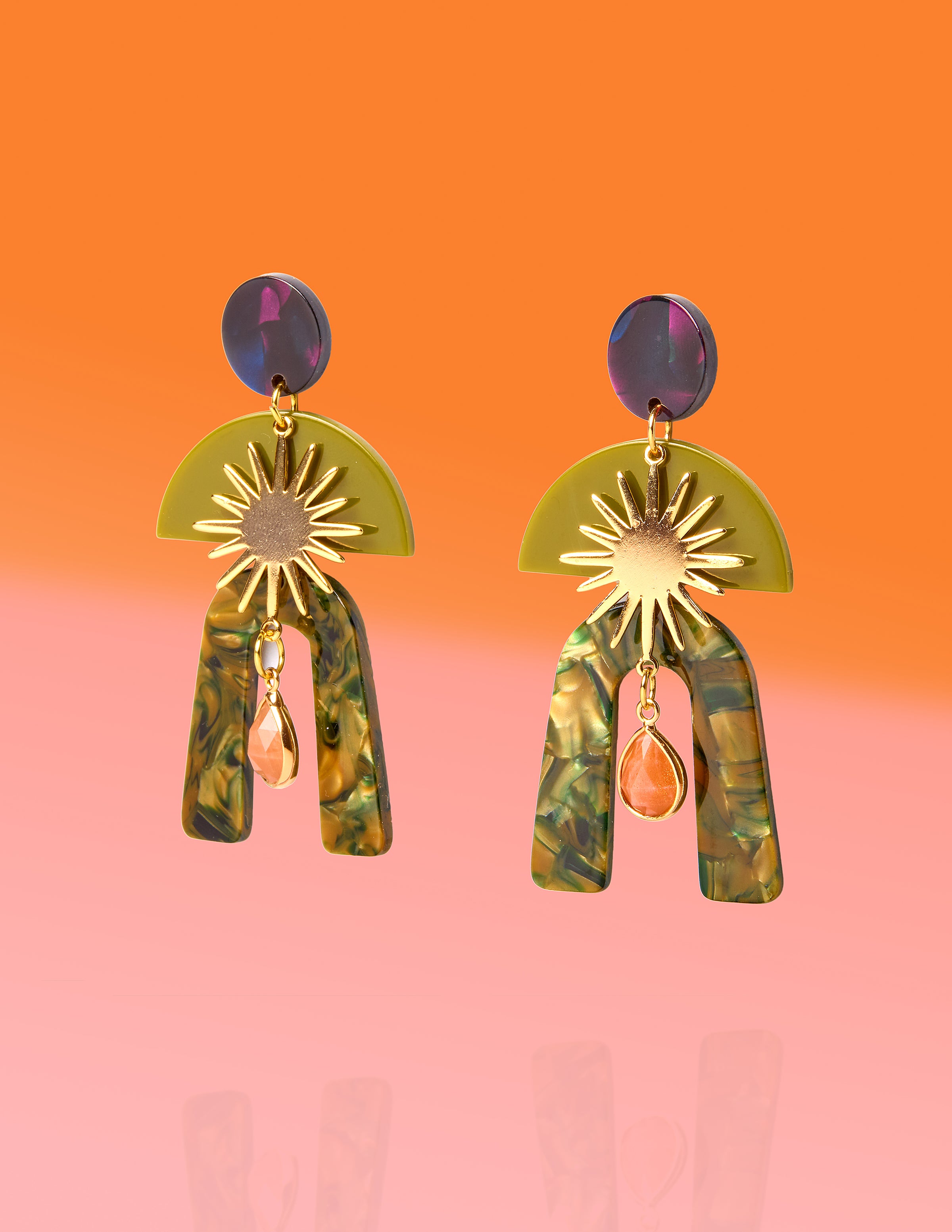 Lieutenant in Glam Mixed Media Earrings Sun Stone