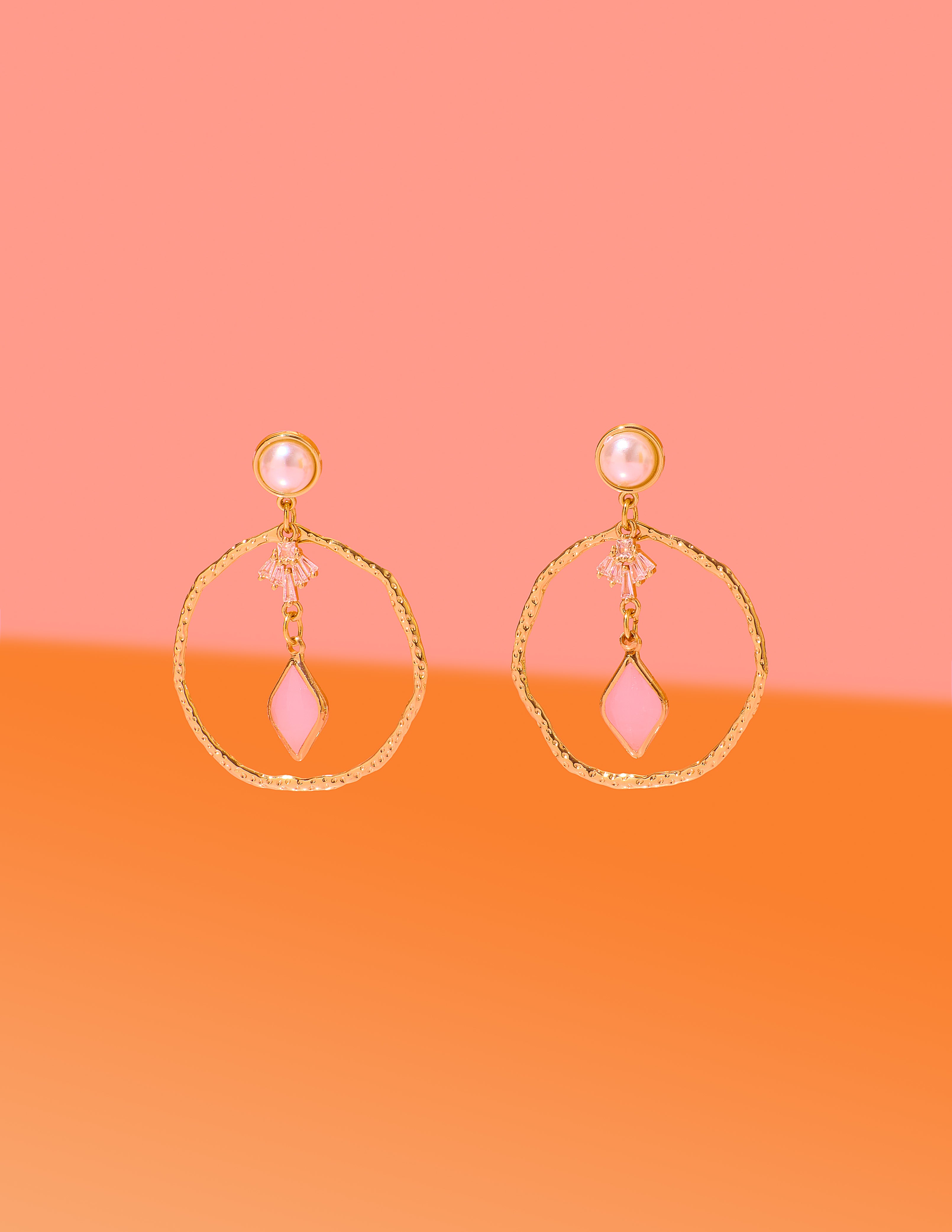 Materials: gold plated glass charms and hoop, pearl surgical stainless steel post