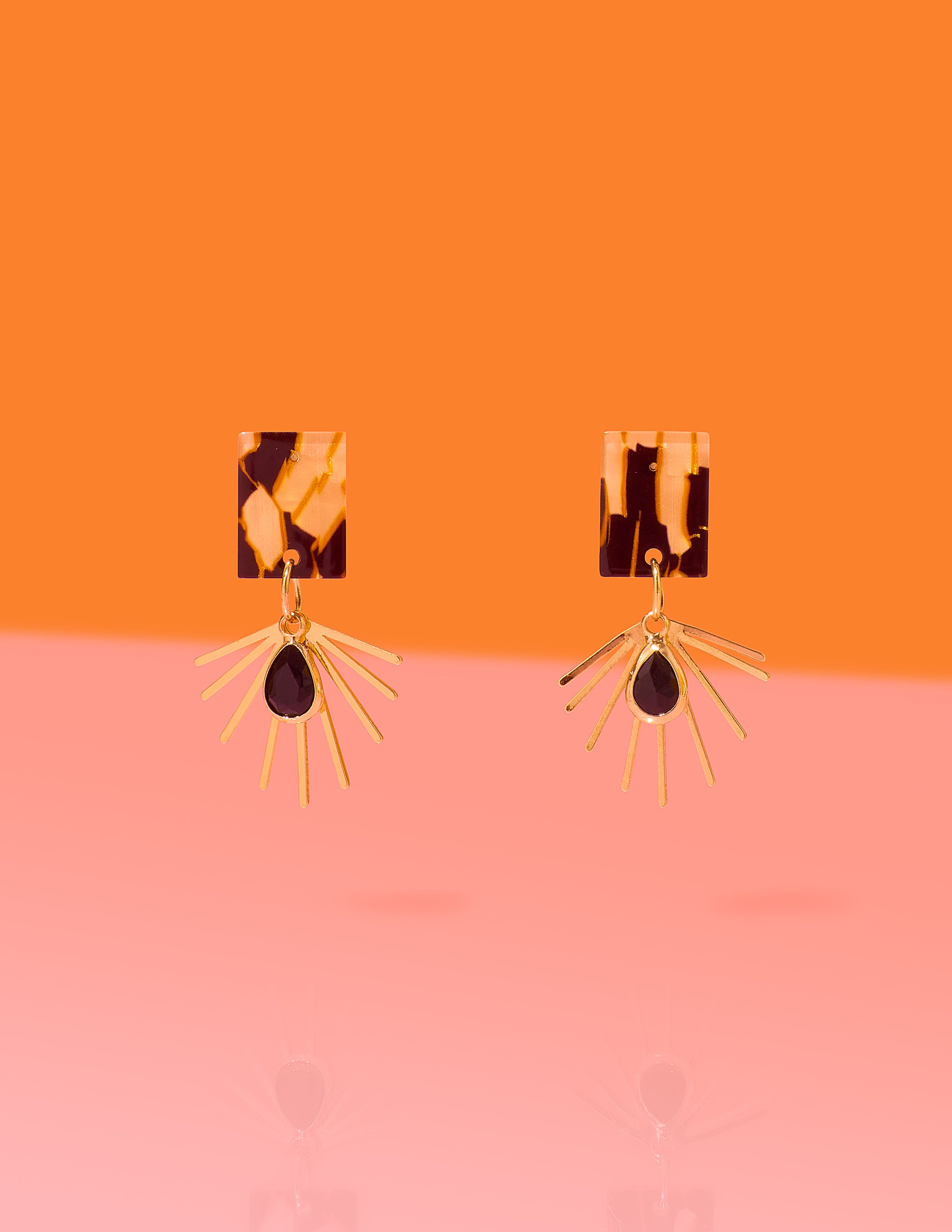 Materials: Resin, 14k plated sun burst, hypoallergenic posts