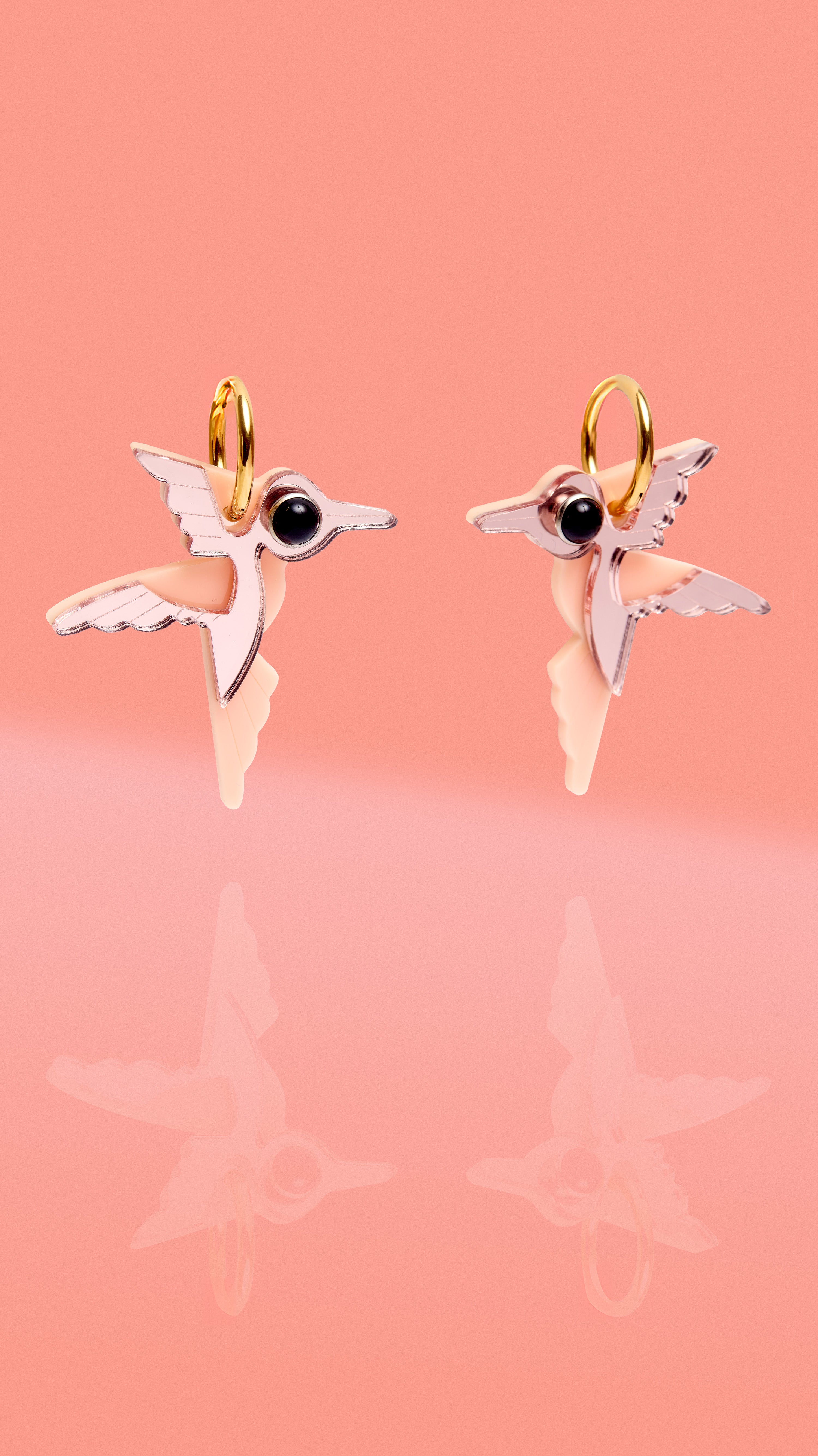 Hummingbird Hoop Earrings Blush + Rose Gold
