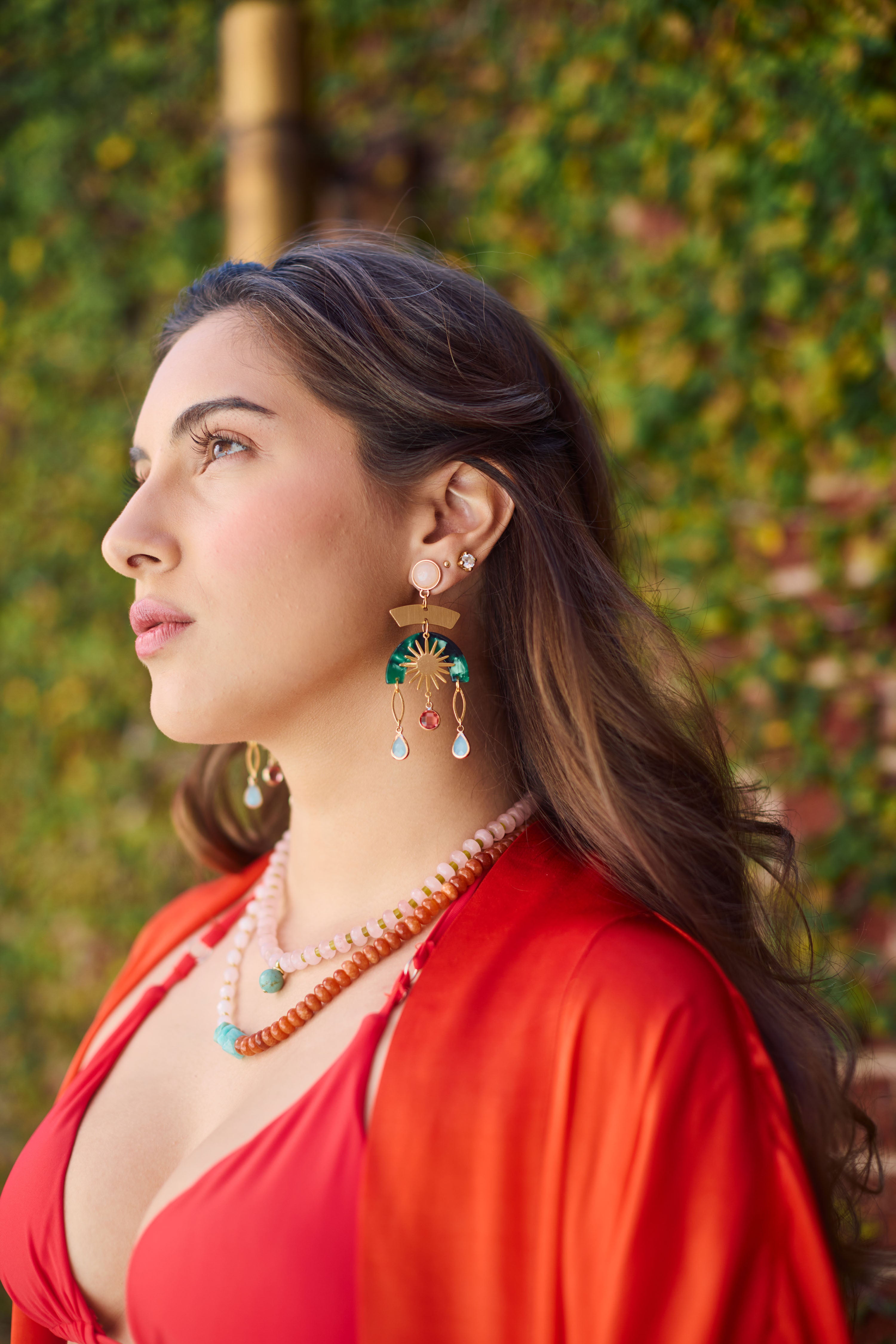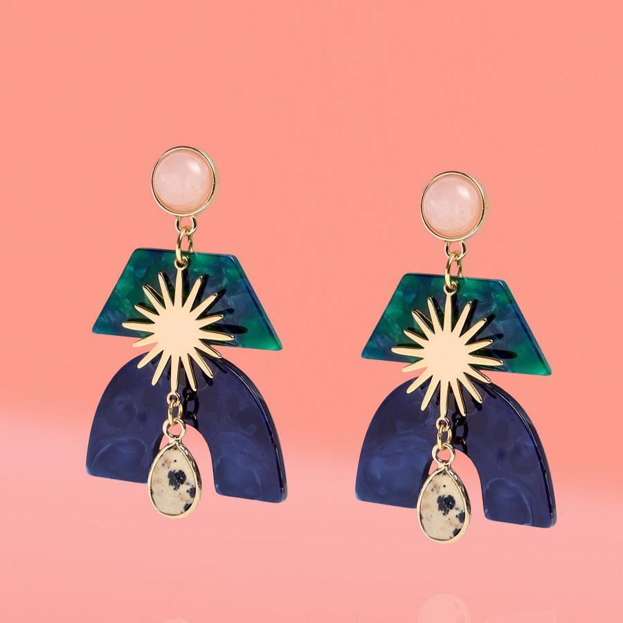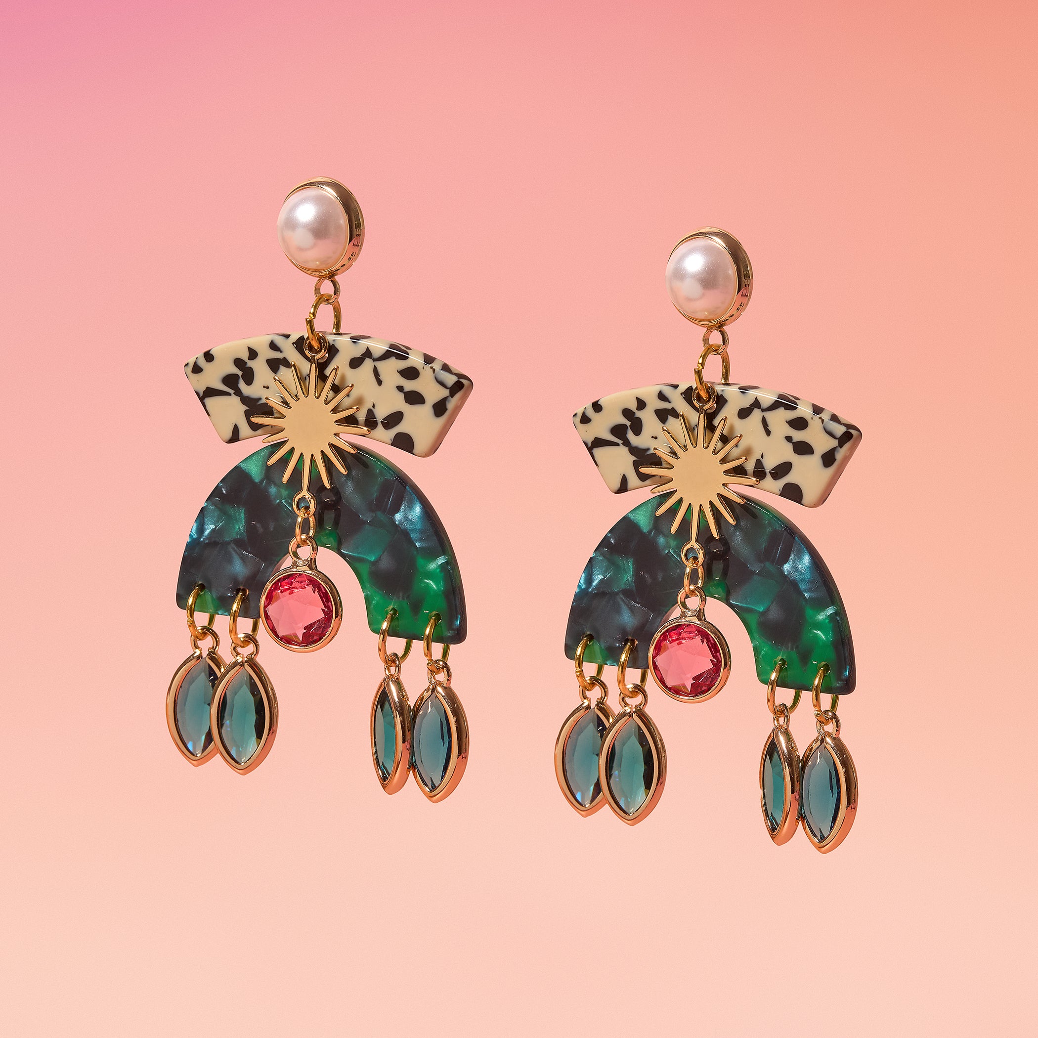Fall Statement Glam Mixed Media Earrings Dalmatian Jasper