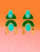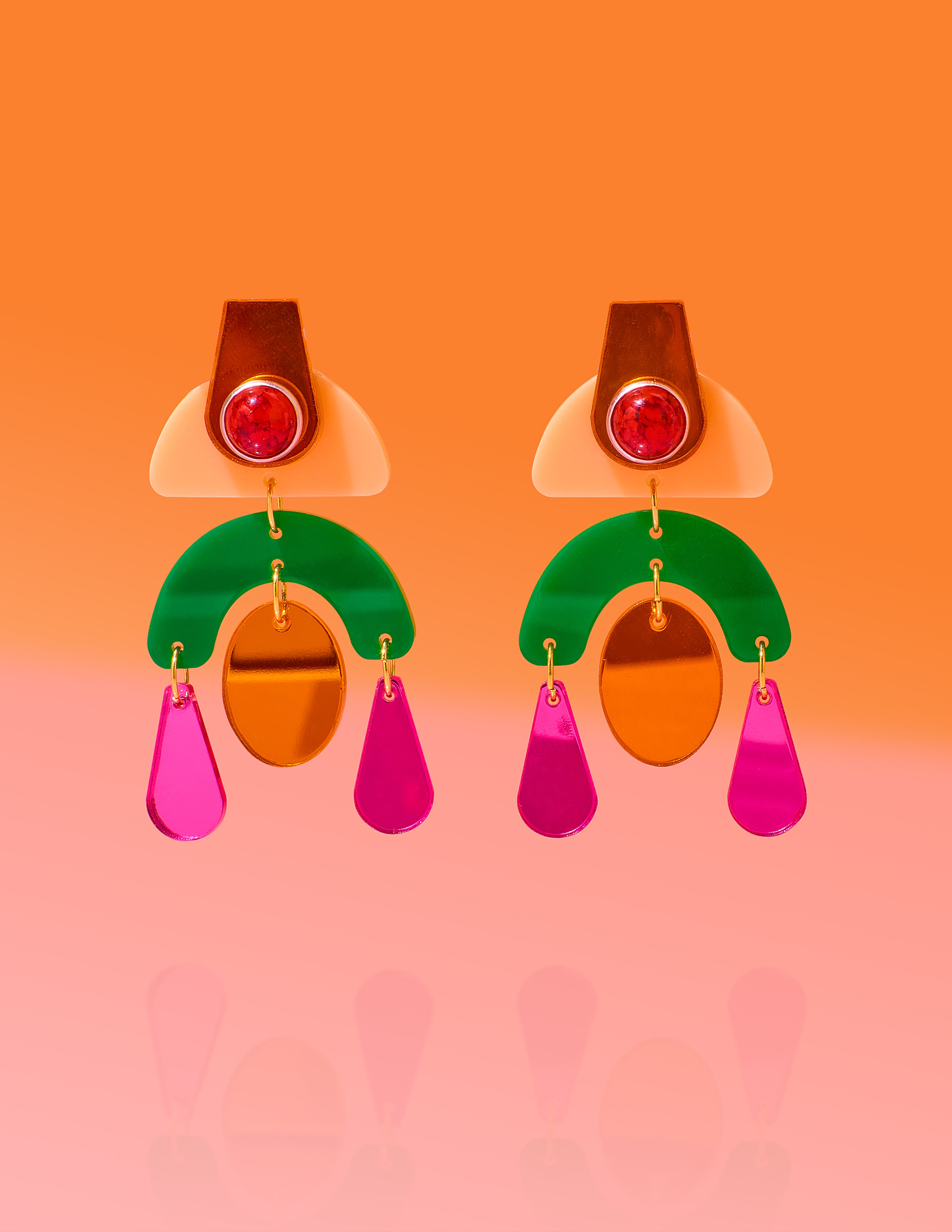 A colorful and joyful finishing touch to any outfit, these earrings feature faux stone rivets with shiny mirrored acrylic.
