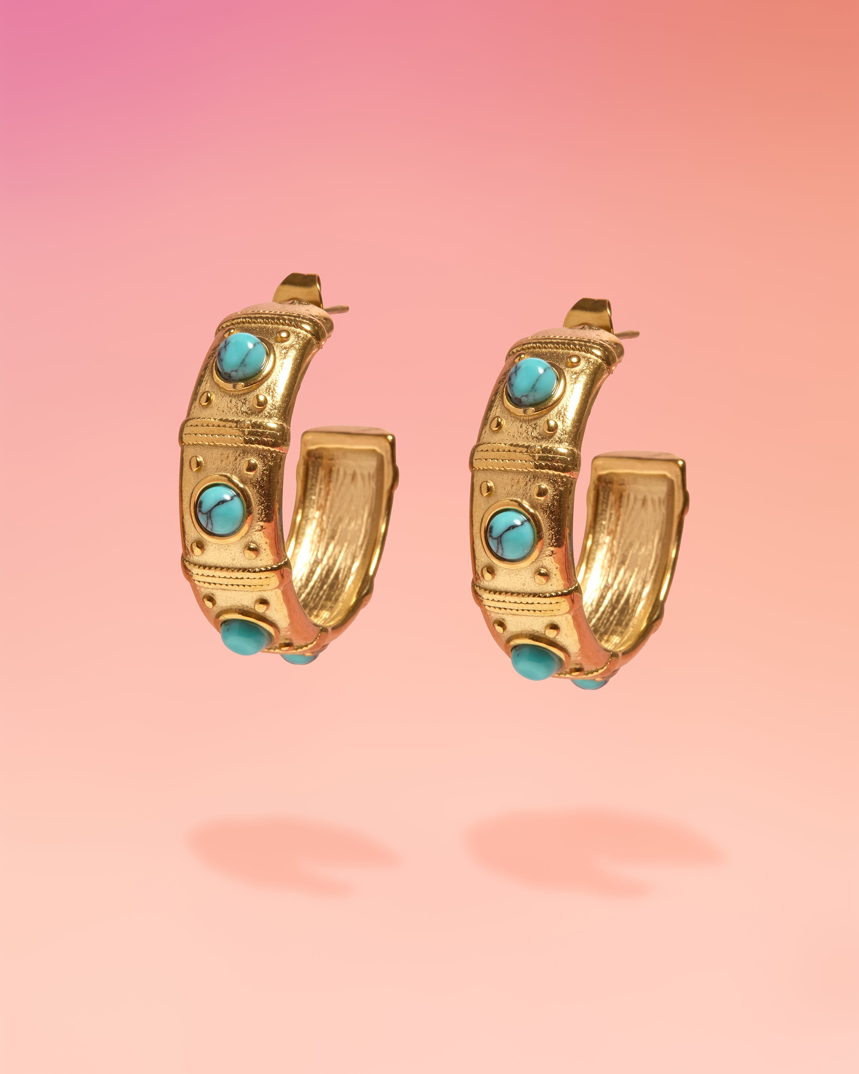 Azura Surgical Stainless Steel Gold Plated hoop with Turquoise